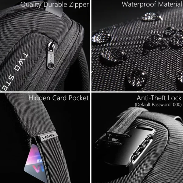 One of the standout features of this chest bag is its built-in USB charging facility, a boon for the modern, tech-savvy traveler. Whether commuting, traveling or simply out and about, you can conveniently charge your devices on the go.