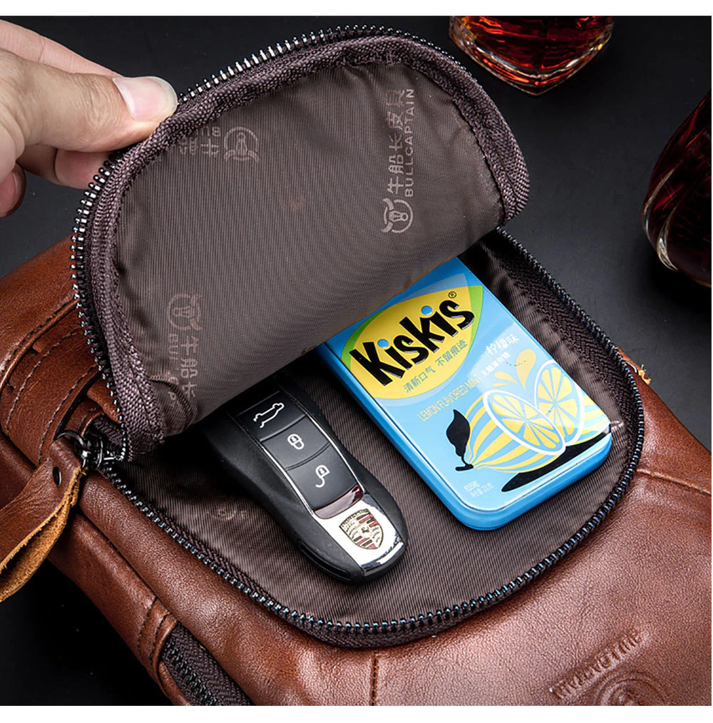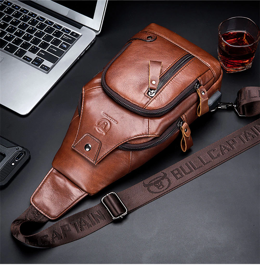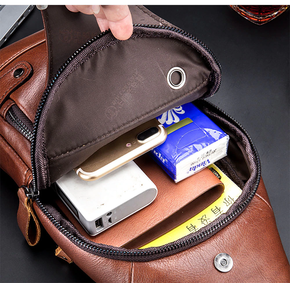 Discover the Premium Quality 100% Cowhide Leather Casual Fashion Crossbody Chest Bag for Men.