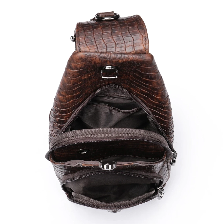 WESTAL’s ZM9076 Men Crossbody Bag is a seamless style, functionality, and security fusion. Made with genuine leather and a unique crocodile design, this bag is the perfect accessory for the modern man who values fashion and practicality.